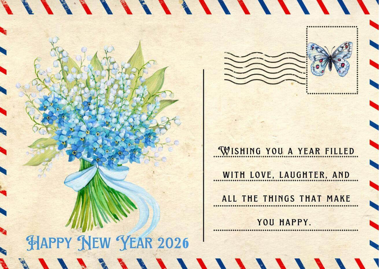 Postcard Themed Happy New Year 2026 Greeting Cards Images