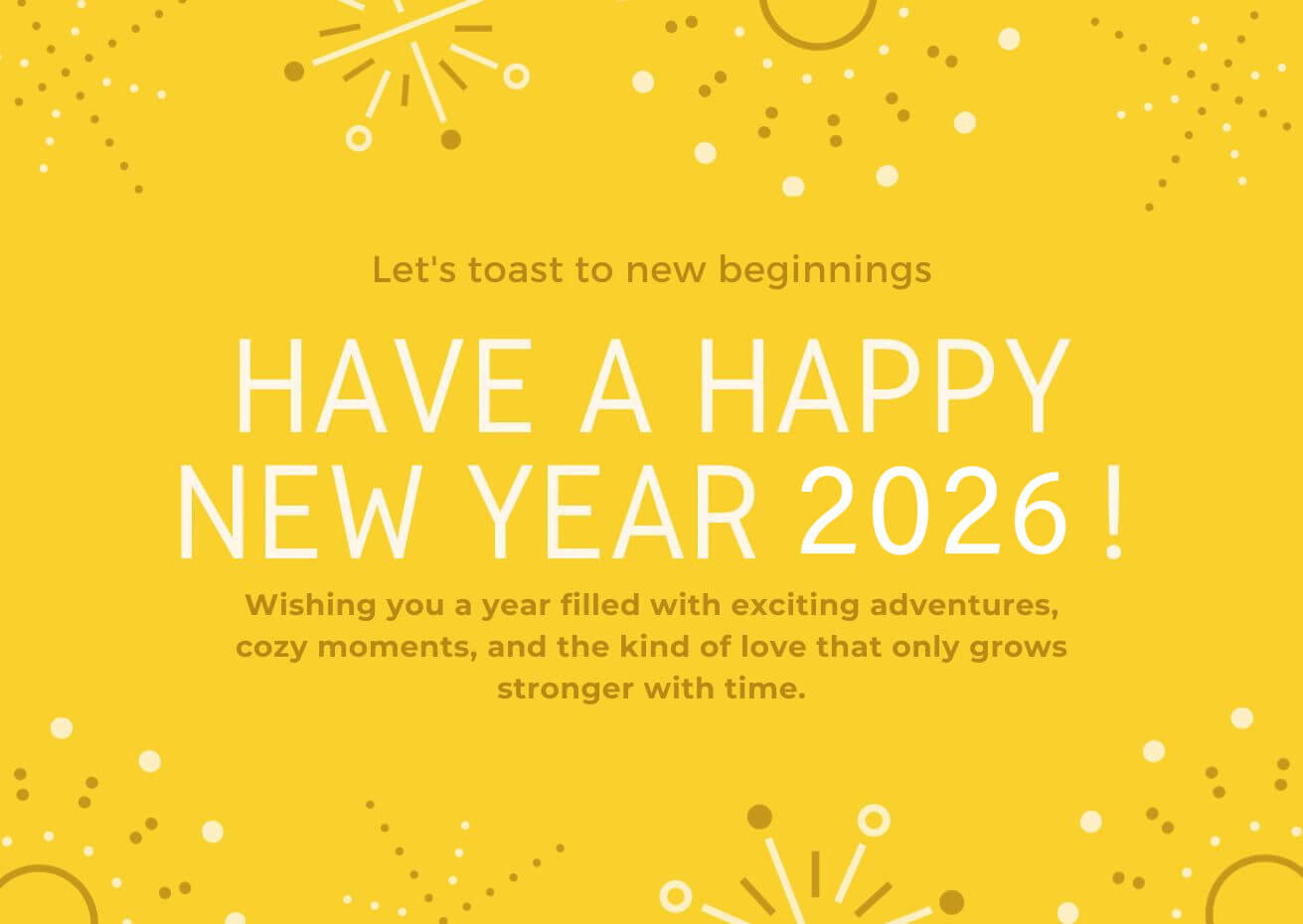 Wishing you a year filled with love, joy, and success in 2026! Happy New Year!